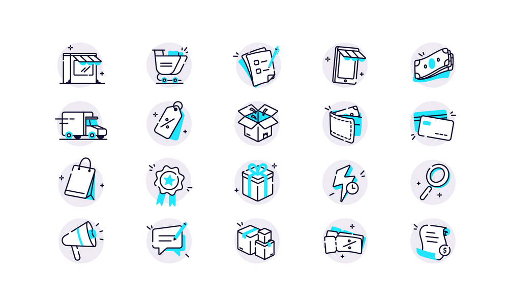 The E-commerce Icons Pack is a modern set of vector icons designed for online stores, apps, and sales dashboards. With clean lines, a minimalist style.